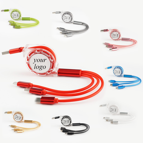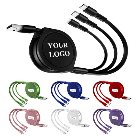 Cheap Retractable 3-in-1 Data Cable Custom Logo 1.5m Multi-function Micro Multi USB Cable Type-C Charging Cable